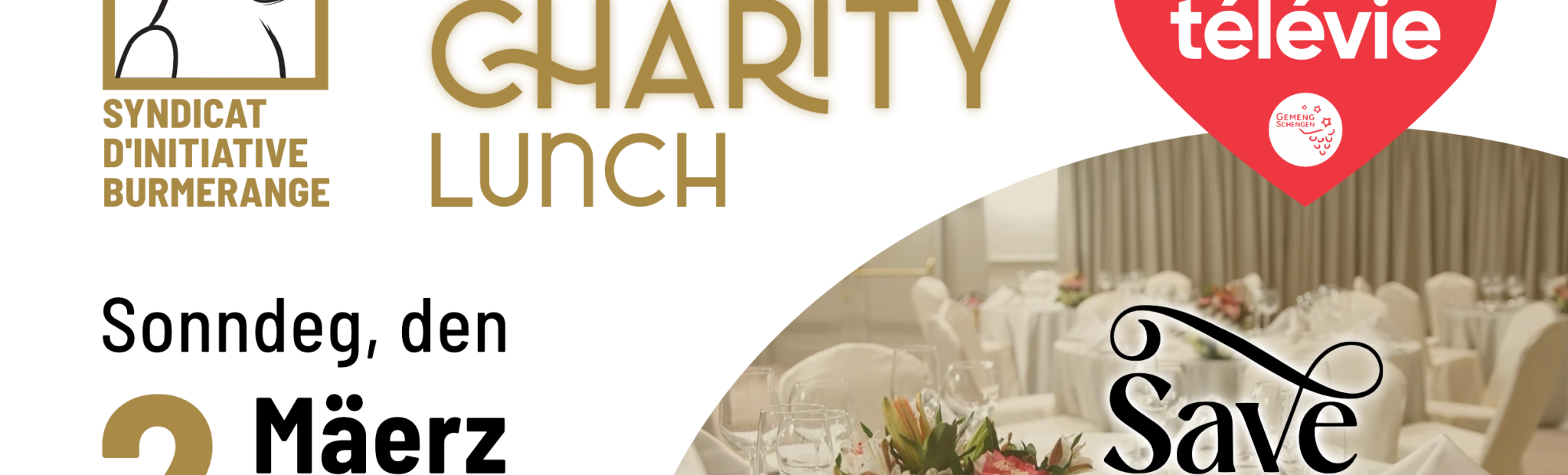 De SIB invitéiert Iech e Sonndeg, den 2. Mäerz 2025 vun 11:30 Auer un, op hiren Télévie Charity Lunch am Centre Maus Ketti (CMK) zu Boermereng.